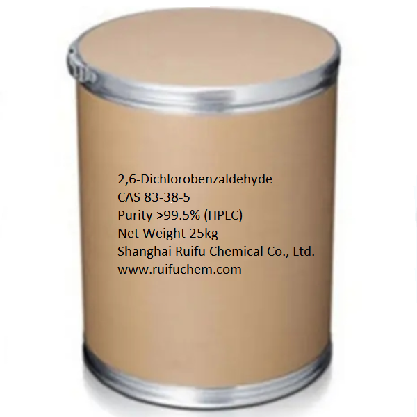 Ruifu Chemical هي الشركة الرائدة في تصنيع وتوريد 2,6-ثنائي كلوروبنزالديهايد (CAS: 83-38-5) بجودة عالية، وقدرة إنتاجية تصل إلى 500 طن سنويًا. يمكن أن توفر Ruifu Chemical خدمة التوصيل في جميع أنحاء العالم والأسعار التنافسية والكميات الصغيرة والكبيرة المتاحة. إذا كنت مهتمًا بـ 2,6-ثنائي كلوروبنزالديهايد، فيرجى إرسال معلومات مفصلة تتضمن رقم CAS واسم المنتج والكمية إلينا.يرجى الاتصال: alvin@ruifuchem.com
