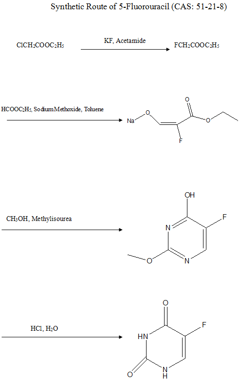 5-الفلورويوراسيل، مثبط تخليق الحمض النووي الريبي (RNA) والحمض النووي (DNA)، هو عامل مضاد للسرطان. 5-الفلورويوراسيل كفلورويوراسيل لمضادات الأيض البيريميدين، يُستخدم حاليًا سريريًا بشكل شائع كدواء للعلاج الكيميائي، وله تأثير على الانتشار، ويمكن أن يمنع تكوين الثيمين، وتثبيط التخليق الحيوي للحمض النووي، وبالتالي تثبيط نمو الخلايا السرطانية.
