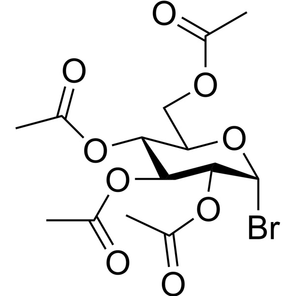 2,3,4,6-Tetra-O-Acetyl-α-D-Glucopyranosyl Bromide (Acetobromo-α-D-Glucose) (CAS: 572-09-8) هو أحد مشتقات الكربوهيدرات وكاشف كيميائي يستخدم على نطاق واسع في الكيمياء السكرية باعتباره مانحًا أو متقبلًا للجليكوزيل في تخليق مركبات قليلة السكاريد المختلفة. يستخدم المركب أيضًا في تخليق الببتيدات السكرية والبروتينات السكرية والكربوهيدرات ذات النشاط البيولوجي المحتمل. يتم استخدامه لتحضير المنتجات الطبيعية الغليكوزيلية ويوفر الوصول إلى هياكل الكربوهيدرات المعقدة للدراسات البيولوجية. وهو يعمل كوسيط في تحضير بيتا جلوكوزيدات. وهو متاح تجاريا ويستخدم على نطاق واسع في أبحاث الكيمياء السكرية.