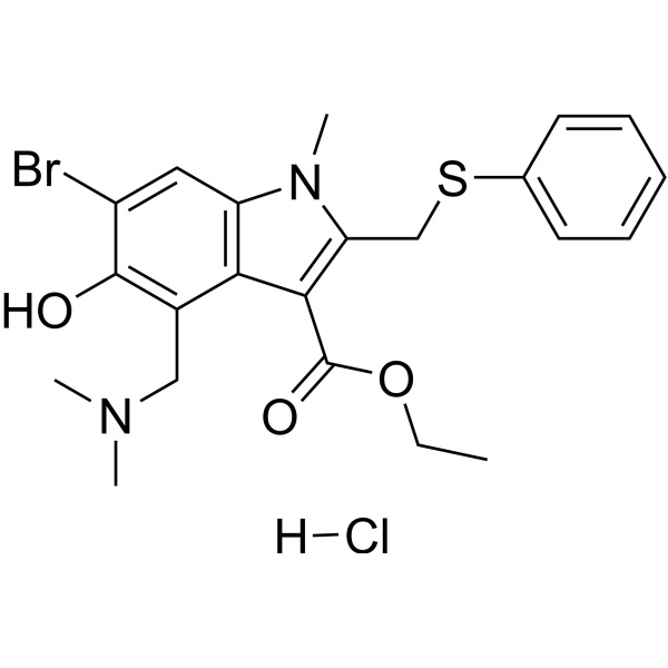 | المرادفات | أربيدول حمض الهيدروكلوريك. أرب؛ أوميفينوفير هيدروكلوريد؛ إيثيل 6-برومو-4-[(ثنائي ميثيل أمينو) ميثيل]-5-هيدروكسي-1-ميثيل-2-[(فينيلثيو) ميثيل]-1H-إندول-3-هيدروكلوريد الكربوكسيل |