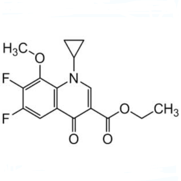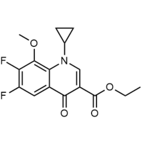 إيثيل 1-سيكلوبروبيل-6,7-ثنائي فلورو-1,4-ثنائي هيدرو-8-ميثوكسي-4-أوكسو-3-كينولين كربوكسيل (إستر إيثيل حمض كربوكسيليك جاتيفلوكساسين) (سجل المستخلصات الكيميائية: 112811-71-9) هو وسيط لجاتيفلوكساسين (سجل المستخلصات الكيميائية: 112811-59-3) / موكسيفلوكساسين هيدروكلوريد (CAS: 186826-86-8).