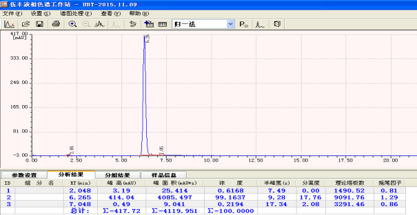 الطور المتحرك: الأسيتونيتريل: الماء = 70:30 (0.01 مول/لتر من فوسفات ثنائي هيدروجين البوتاسيوم و0.4 جم في 300 مل من الماء عالي النقاء.)