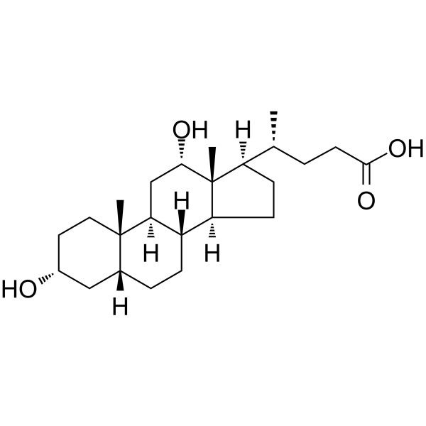 عادةً ما يكون حمض الديوكسيكوليك (CAS: 83-44-3) مترافقًا مع الجليسين أو التورين ويعمل كمنظف في استحلاب الدهون لامتصاصها من الأمعاء.