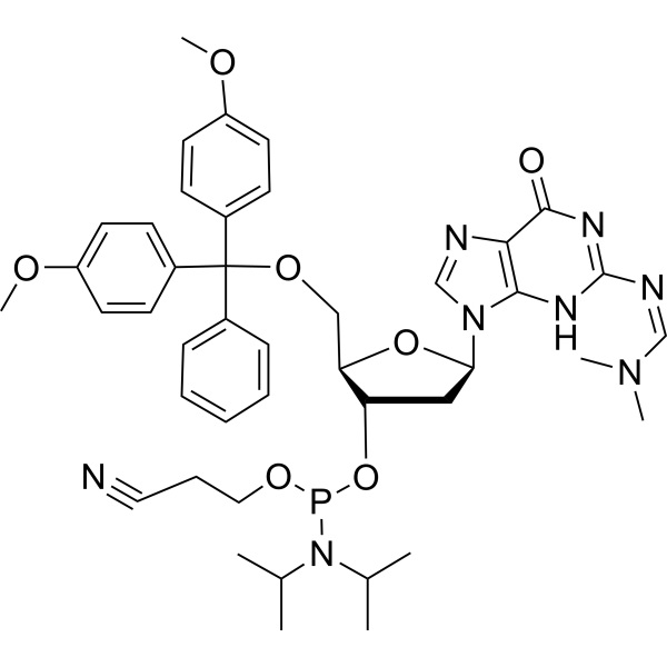 | المرادفات | DMT-dG(dmf) أميديت؛ DMF-dG فوسفوراميت؛ DMT-dG(dmf)-CE; 2'-ديوكسي-N2-DMF-5'-O-DMT-جوانوسين 3'-CE فوسفوراميديت؛ 5'-O-DMT-2'-ديوكسيجوانوسين (DMF)-CE فوسفوراميت؛ 5'-O-DMT-N2-(ديميثيلامينو) ميثيلين-2'-ديوكسي جوانوسين فوسفوراميديت؛ N-[(ديميثيلامينو) ميثيلين]-5′-O-[مكرر(4-ميثوكسي فينيل) فينيل ميثيل]-2′-ديوكسيجوانوزين؛ 3′-[2-سيانو إيثيل N، N-مكرر (1- ميثيل إيثيل) فوسفوراميت] |