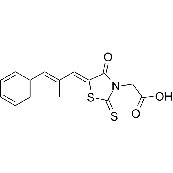 | المرادفات | إيبالريست؛ أونو-2235؛ إيبيث؛ كينيداك. سوربيستات. (5Z)-5-[(2E)-2-ميثيل-3-فينيل-2-بروبين-1-يليدين]-4-أوكسو-2-ثيوكسو-3-حمض ثيازوليدين أسيتيك؛ 2-[(5Z)-5-[(E)-3-فينيل-2-ميثيل بروب-2-إنيليدين]- 4-أوكسو-2-ثيوكسو-3-ثيازوليدينيل] حمض الأسيتيك؛ (E,E)-2-[5-(2-ميثيل-3-فينيل-دعامة-2-إنيليدين)-4-أوكسو-2-سلفانيليدين-ثيازوليدين-3-يل] حمض أسيتيك |