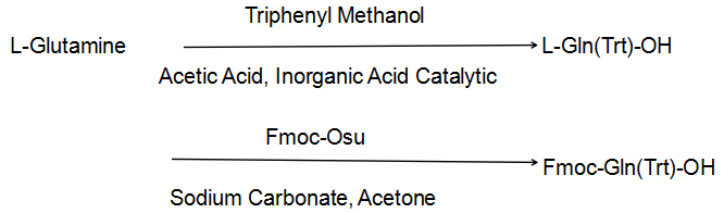 يتمتع Fmoc-Gln(Trt)-OH بخصائص ذوبان جيدة في معظم المذيبات العضوية، وقد ثبت أن استخدامه يؤدي إلى ببتيدات أنقى بكثير من المشتقات الأخرى المستخدمة في إدخال Gln. يمكن إجراء الاقتران من خلال الإجراءات القياسية. تتم إزالة مجموعة الحماية التريتيل عادةً بنسبة 95% TFA خلال 1-3 ساعات، بدون ألكلة Trp.
