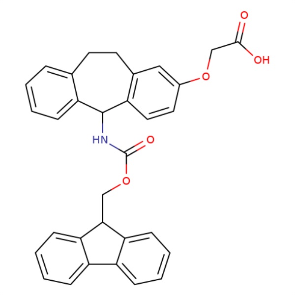 | المرادفات | معتدلاً-سوبيرول. Fmoc-رابط راماج؛ (R,S)-2-[[5-(9-فلورينيل ميثيلوكسي كربونيلامينو)-ثنائي بنزو [a,d] سيكلوهيبتان-2-yl]أوكسي] حمض الأسيتيك؛ 2-((5-(((9H-الفلورين-9-yl)ميثوكسي)كربونيل)أمينو)- 10,11-ثنائي هيدرو-5H-ثنائي بنزو[a,d][7]أنولين-2-yl)أوكسي)حمض أسيتيك |