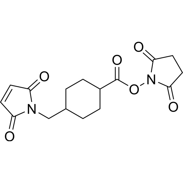 | المرادفات | SMCC؛ إس إم سي سي كروسلينكر؛ 4-(ماليميدوميثيل) الهكسان الحلقي-1-حمض الكربوكسيل N-هيدروكسي سوسينيميد إستر؛ N-سوكسينيميديل 4-(ماليميدوميثيل) سيكلوهكسان-1-كربوكسيلات؛ 4-(N-ماليميدوميثيل) حمض سيكلو هكسان كربوكسيليك N-سوسينيميديل إستر؛ سوكسينيميديل- ترانس-4-(ن-ماليميديل ميثيل) الهكسان الحلقي-1-كربوكسيل؛ 2,5-ديوكسوبييروليدين-1-يل 4-[(2,5-ديوكسو-2,5-ثنائي هيدرو-1H-بيرول-1-يل)ميثيل] الهكسان الحلقي-1-كربوكسيل |